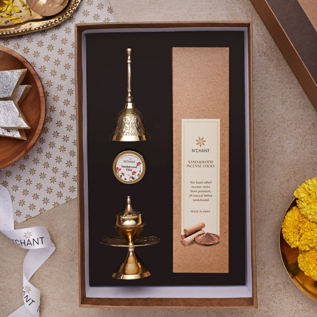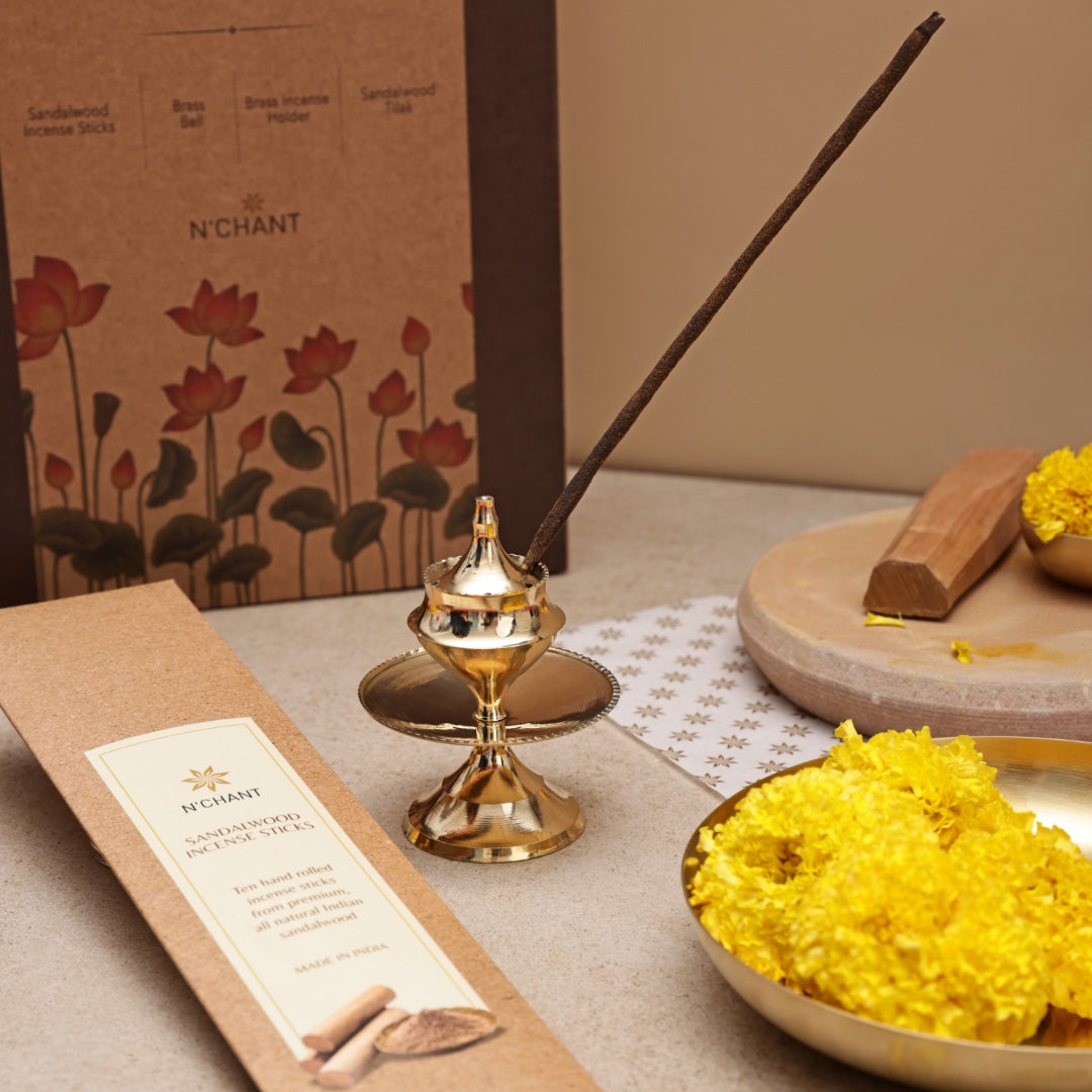 Sandalwood Incense | Sandalwood Tilak | Brass Bell | Brass Incense Holder