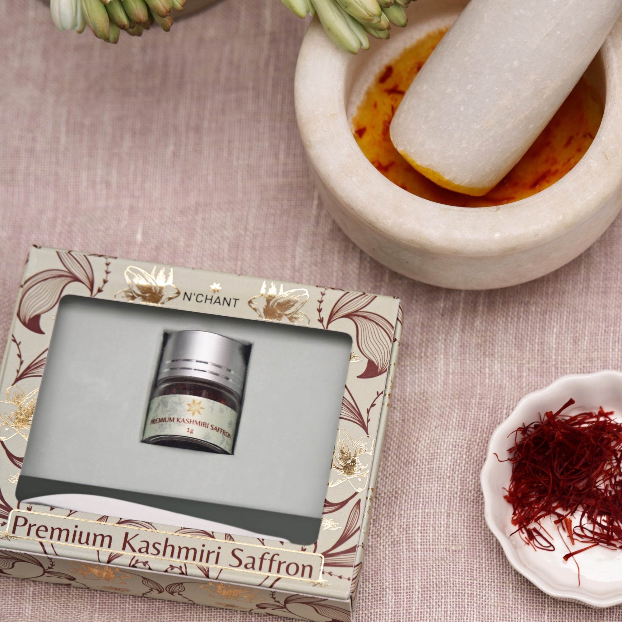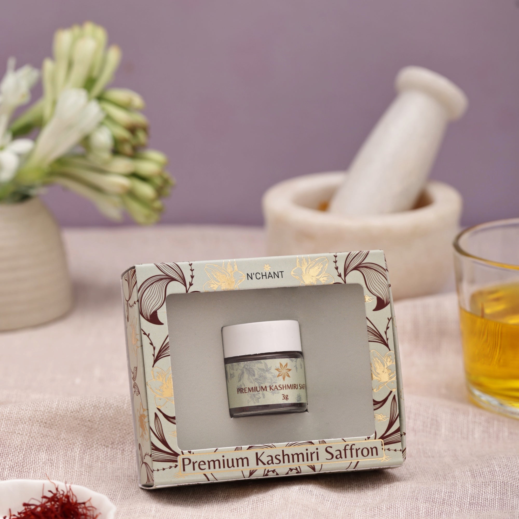 N'Chant’s Premium Kashmiri Saffron brings you the richness of centuries-old heritage, packed beautifully for thoughtful gifting or self-indulgence. Handpicked from Kashmir’s finest fields, it offers unparalleled aroma, flavor, and wellness benefits in every strand.